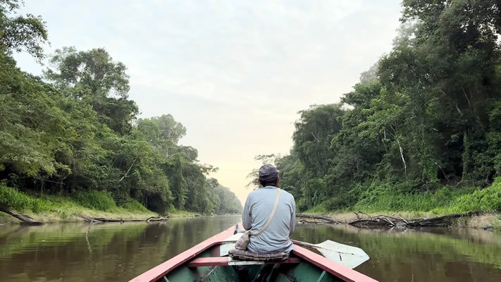 Travel by pamacari (traditional wooden boat) for 2–3 hours deeper into the reserve, arriving at “El Renacal” area.
